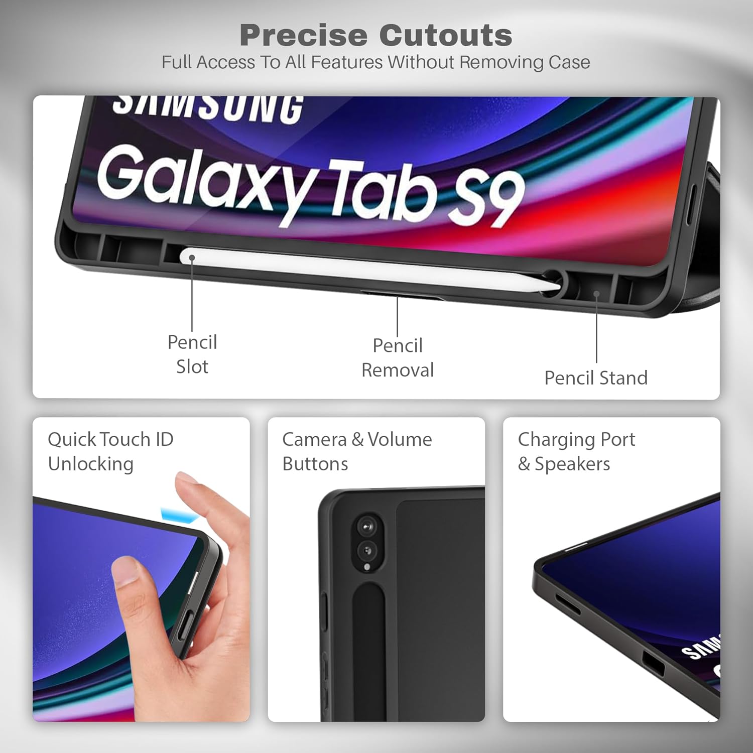 | Compatibility | Tab S9 / S9 FE 11-inch (2023 Models) | Guarantees a precise fit and access to all controls. |