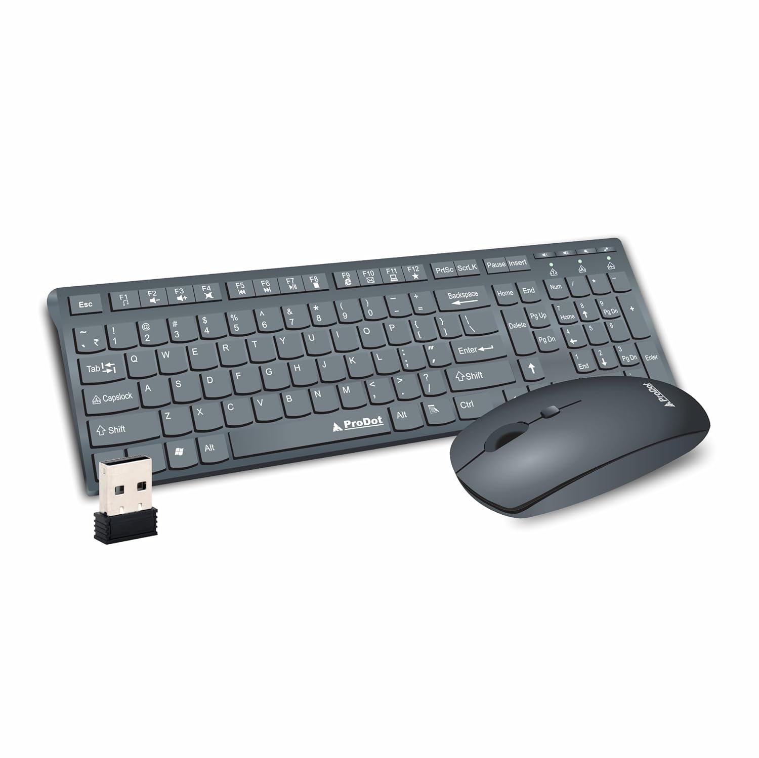 ProDot ProSeries Wireless Chicklet Keyboard Mouse Set I Plug & Play I Adjustable 1000-1600 DPI I 10M Keystrokes I Spill Resistant I 2.4Ghz 10m Range I Works with Windows, iOS, Linux