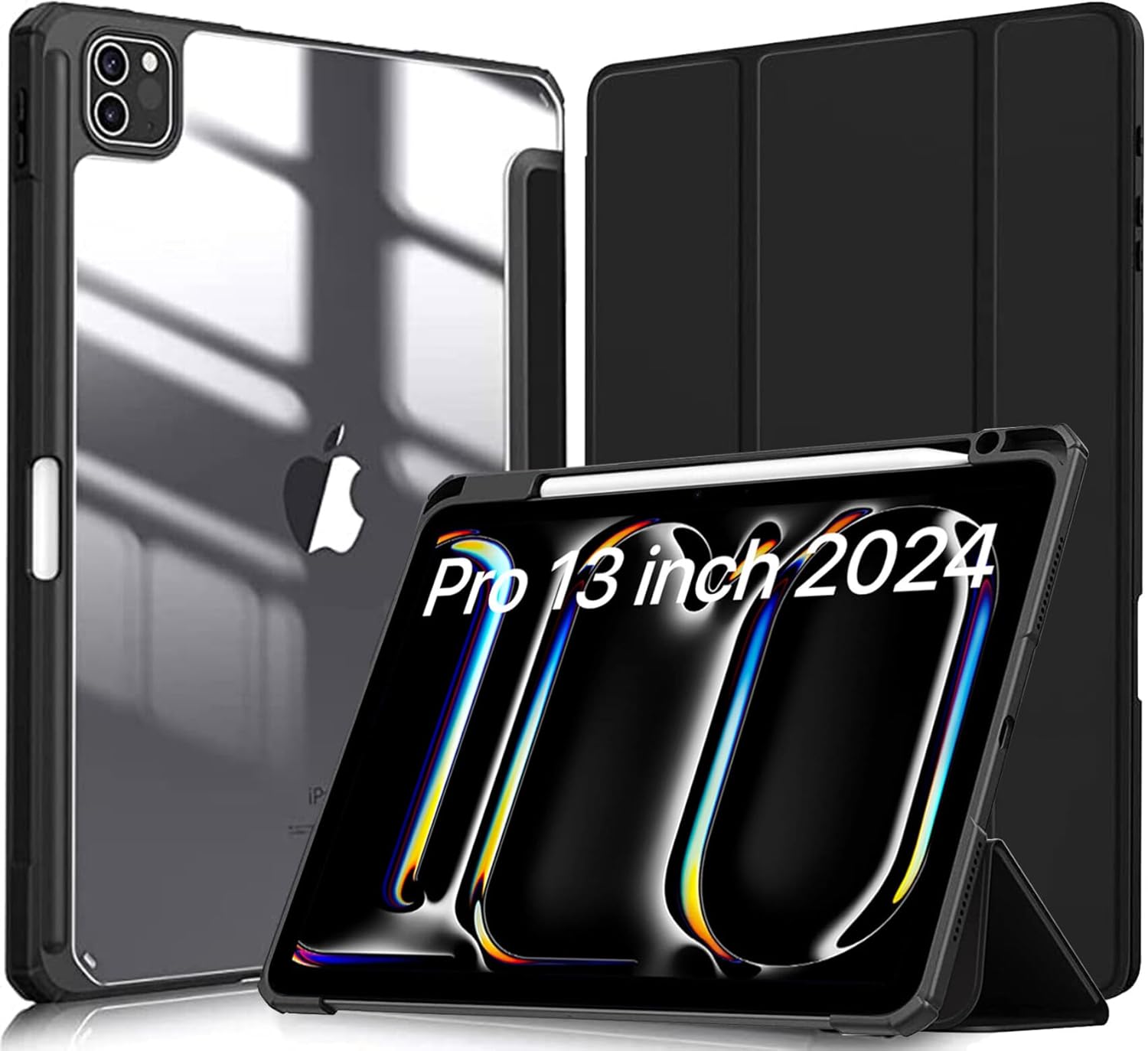Robustrion for iPad Pro 13 inch M4 Cover Case with [Pencil Holder] [Transparent Back] Hybrid Case Cover for iPad Pro 13 inch [Auto Sleep Wake Support] - Black