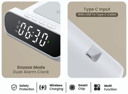 | Functions | Wireless Charger + Digital Alarm Clock + Night Light |