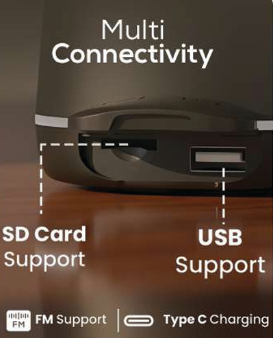 | Connectivity | Bluetooth, FM Radio, USB, and TF Card (MicroSD) |